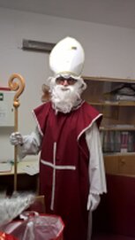 es liegt zu seinen Füssen davon ein Stück Papier.